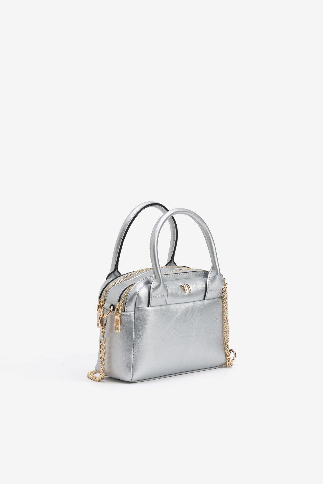 Bolso Brillante City con correa desmontable y dos cremalleras superiores. Cierre con cremallera interior. Dimensiones: 21 x 16 x 8 cm